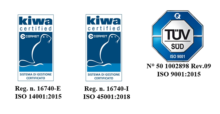 Tutti i nostri prodotti sono certificati TUV e ISO: per questo motivo garantiscono standard elevati in termini di qualità, ambiente, salute e sicurezza sul lavoro.
